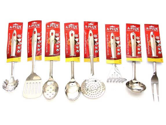 8 Piece Stainless Steel Kitchen Tools Set. Cooking Utensil Serving Set Spatula Spoon Server This is the perfect 8 piece starter set of stainless steel utensils.