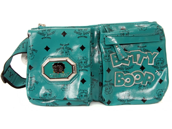 Printed PVC Betty Boop Licensed Waist Pouch with adjustable single strap. Made with PU(polyurethane) and zipper closures.