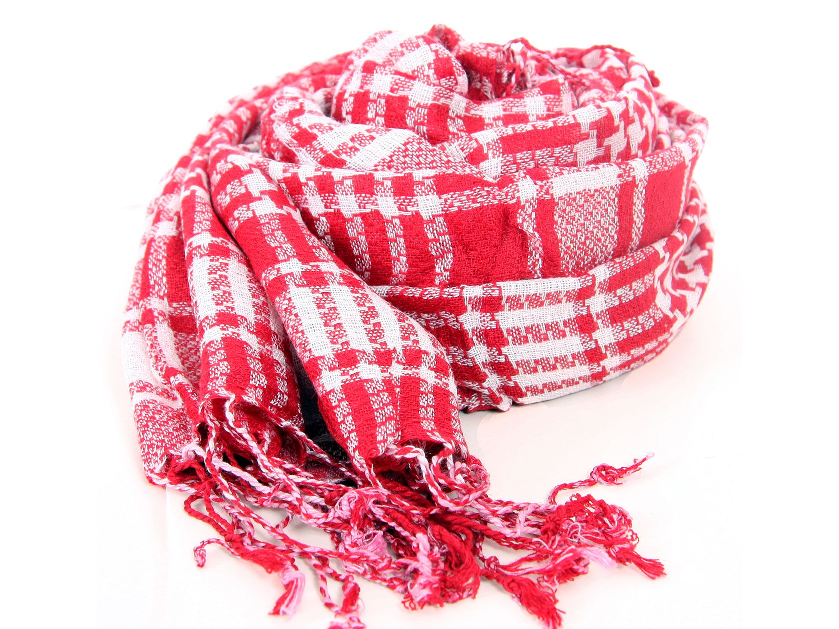 100% viscose yarn dyed scarf in red & white checkered print & twisted fringes at its ends. Imported.