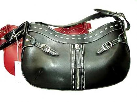 Convenient & small bag for women in PVC with adjustable shoulder strap & top zipper closure. Stitching like design & zipper accent on the front of the bag.