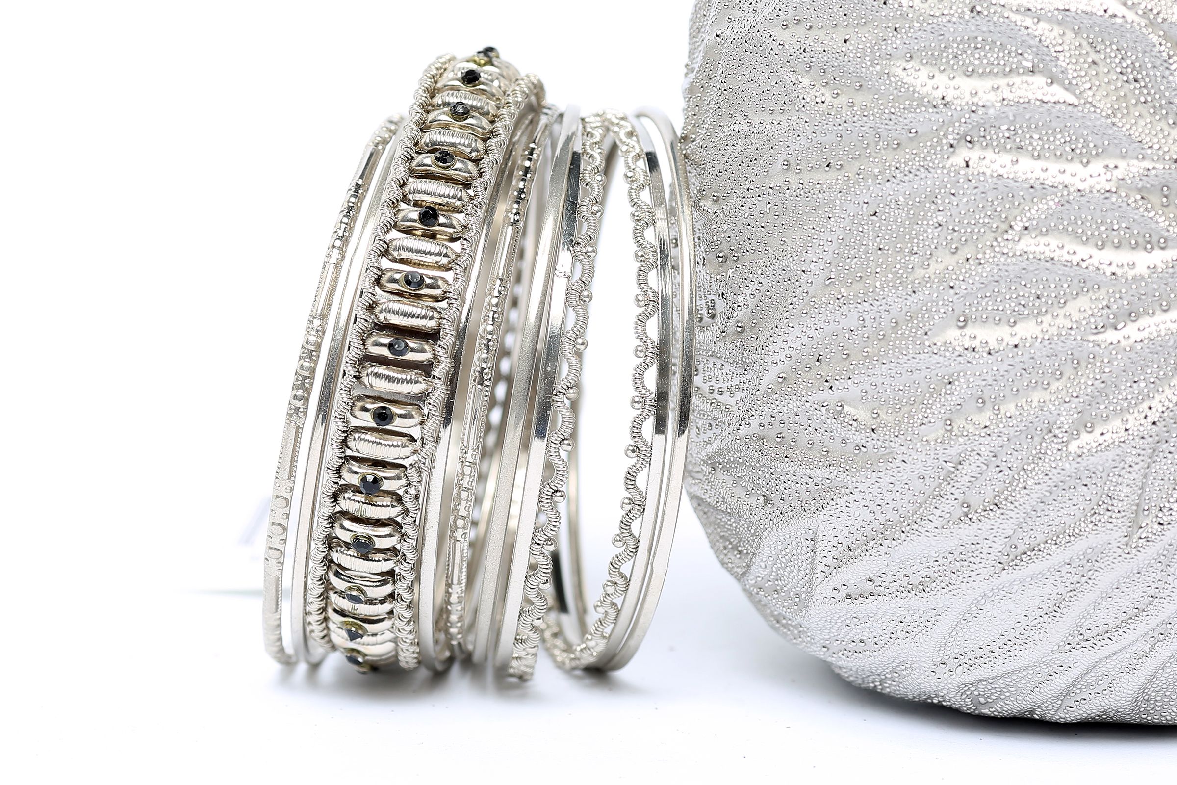 Boho Fashion Silver Color Bangle Bracelet Set #POB-04224