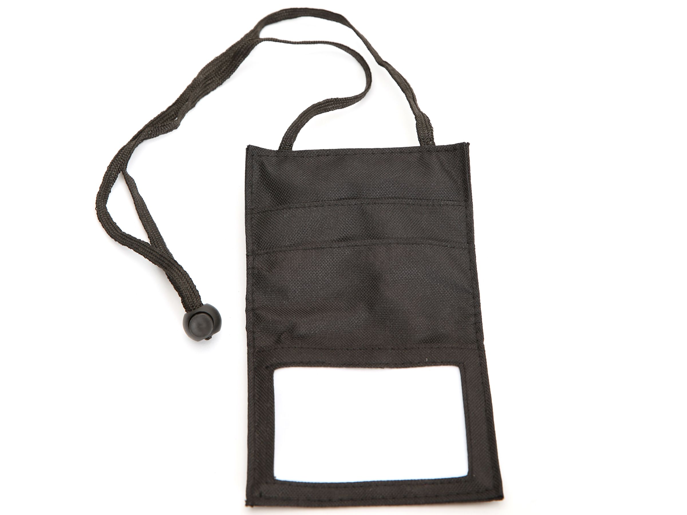 This is a travel passport security neck lanyard wallet. Made of woven nylon fabric.