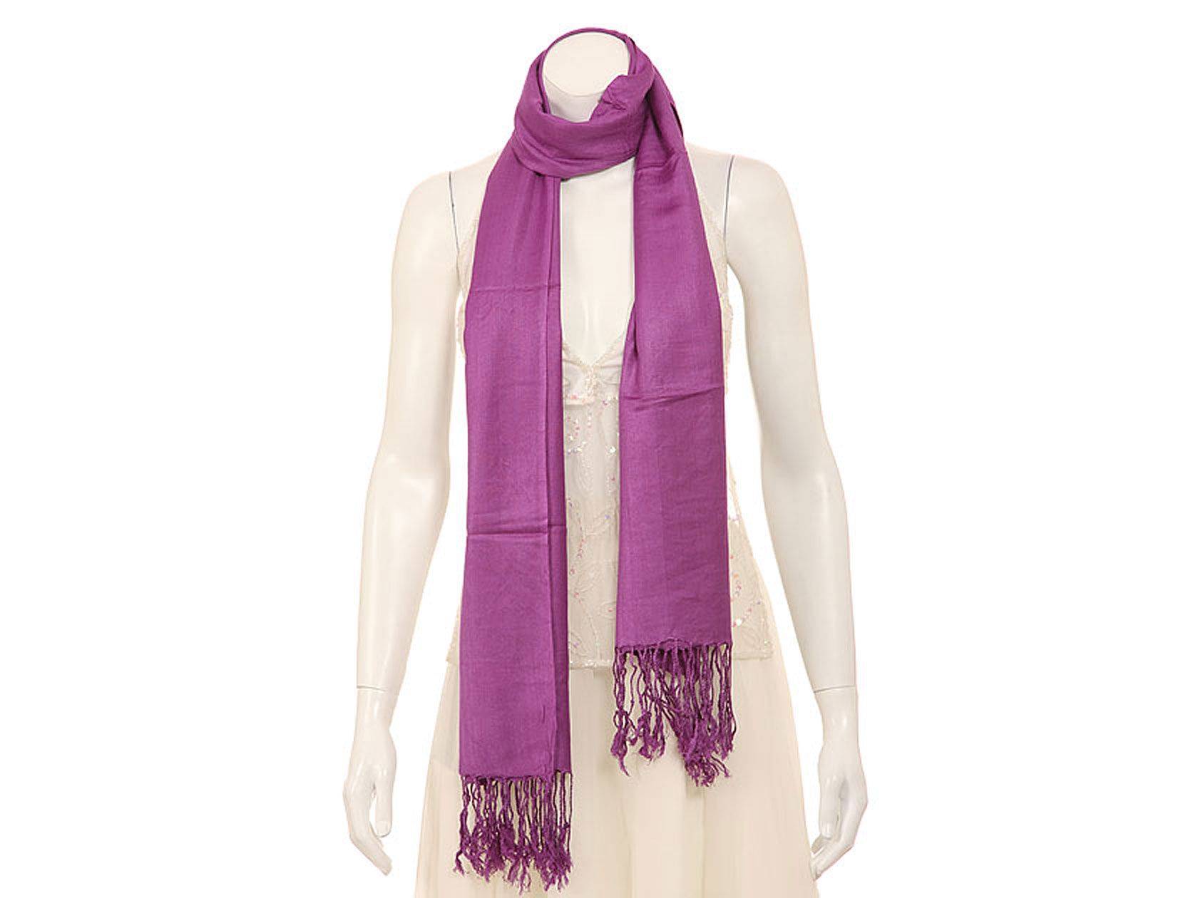 100% viscose woven long shawl with long fringes at its edges. Can be used as a headgear, scarf or a shawl to wrap around shoulders. Imported.