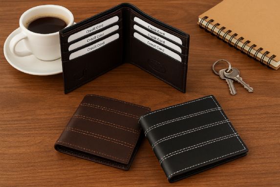 Carry your money in style. This is a double bill genuine leather bi-fold mens wallet. This brand wallet is made of high quality cowhide. There are 6 slots for credit cards. As this is genuine leather, please be aware that there will be some small creases and nicks in the leather but the wallet are all brand new.