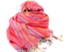Dark coral with orange & red hues viscose scarf with twisted fringes on the edges. Multi colored woven stripes makes it more vibrant. Yarn dyed 100% viscose material. Hand wash. Imported.