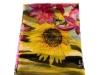 This multi colored printed design scarf has a sunflower along with other flowers. Handwash & Imported from India. 100% Polyester.