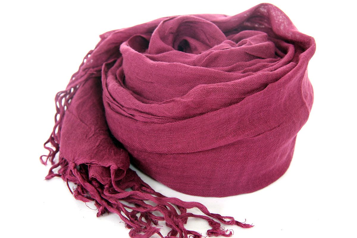 Beautiful Rust colored scarf has horizontal open weave pattern. Long twisted fringes completes this 100% viscose scarf. Classy scarf can also be teamed up with a formal dress as a shawl. Imported.