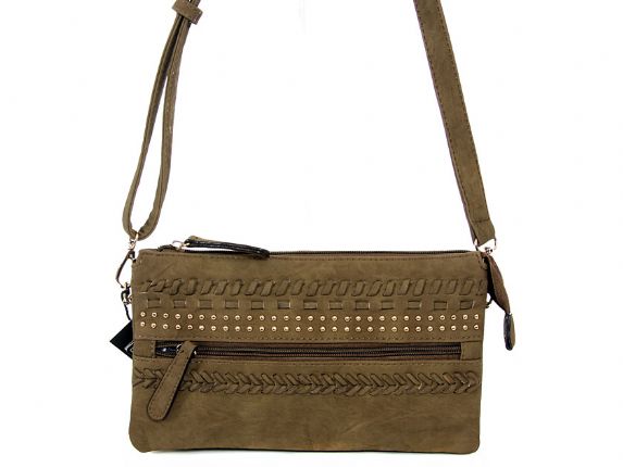 Faux Leather Shoulder bag. Top zipper closing, three separate compartments, front zipper pocket, adjustable strap.