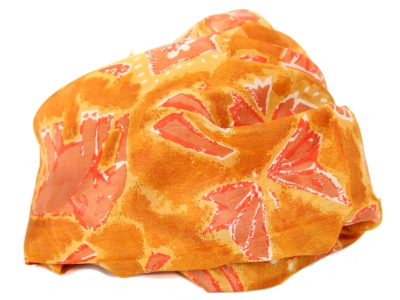 Bright mustard 100% silk scarf with tribal objects print in coral color. This square scarf is lightweight & very soft to use. can be used as a headband or around the neck. Made in India.