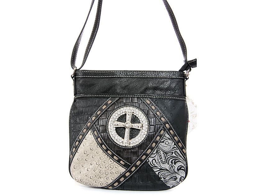 Patch-work Cross Messenger Bag. Top zipper pocket. Back zipper pocket