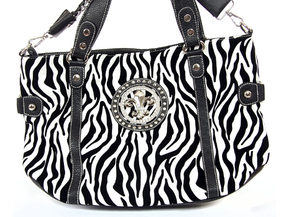 Zebra Print Fleur De Liz Handbag #ZLP-006F-BK