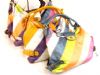 Trendy Hobo Handbag has a single double strap, a twist lock closure and a metallic multi color stripes pattern. Made of faux leather.